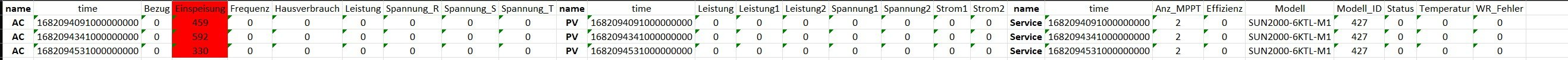 Sprich alle Entries in den 3 Tables sind "0" mit Ausnahme des Values Einspeisung.