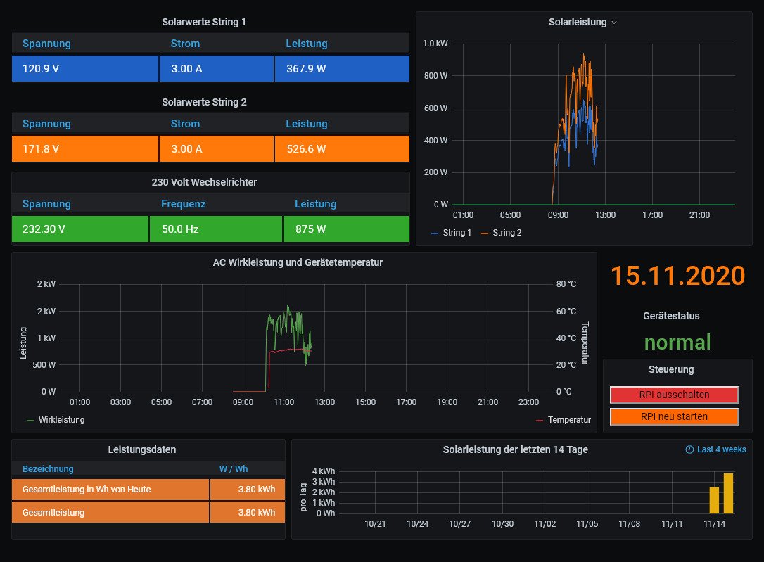 Die Growatt Wechselrichter werden mit einem RS485 Adapter angeschlossen. Die serielle Geschwindigkeit ist 9600 Baud. Die Reglernummer ist 48. Bitte auch die Geräte ID prüfen. In der user.config.php muss sie unter $WR_Adresse eingegeben werden. Normalerweise "1" Getestet mit Growatt 1500-S und Growatt 3000MIN. Unser Mitglied andreas_n hat auch eine Anleitung für den nötigen RS485 Adapter geschrieben. Vielen Dank.