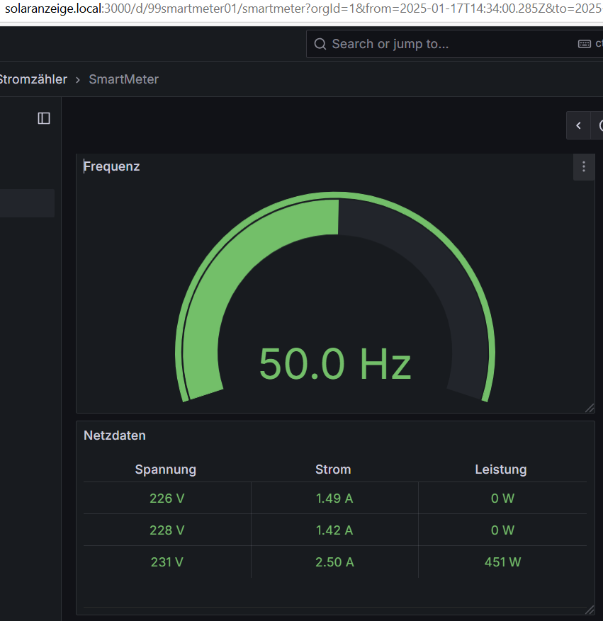 Fangen wir mit dem Dashboard an. Wer hat das erstellt? Dann schaue einmal in das Panel, dort werden bestimmt falsche Datenbankfelder abgefragt. Ein Standard Dashboard von der Solaranzeige gibt es für den SDM630 nicht. Ich gehe davon aus, dass man das Dashboard vom SDM230 benutzt hat, der nur eine Phase hat.