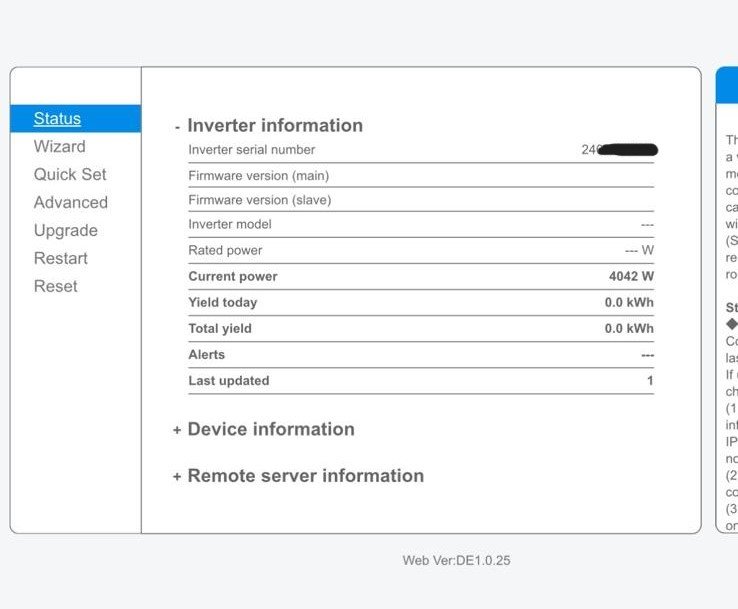 Deswegen mein Wunsch über die Solaranzeige, die ich mir dann auch über VPN ansehen kann.