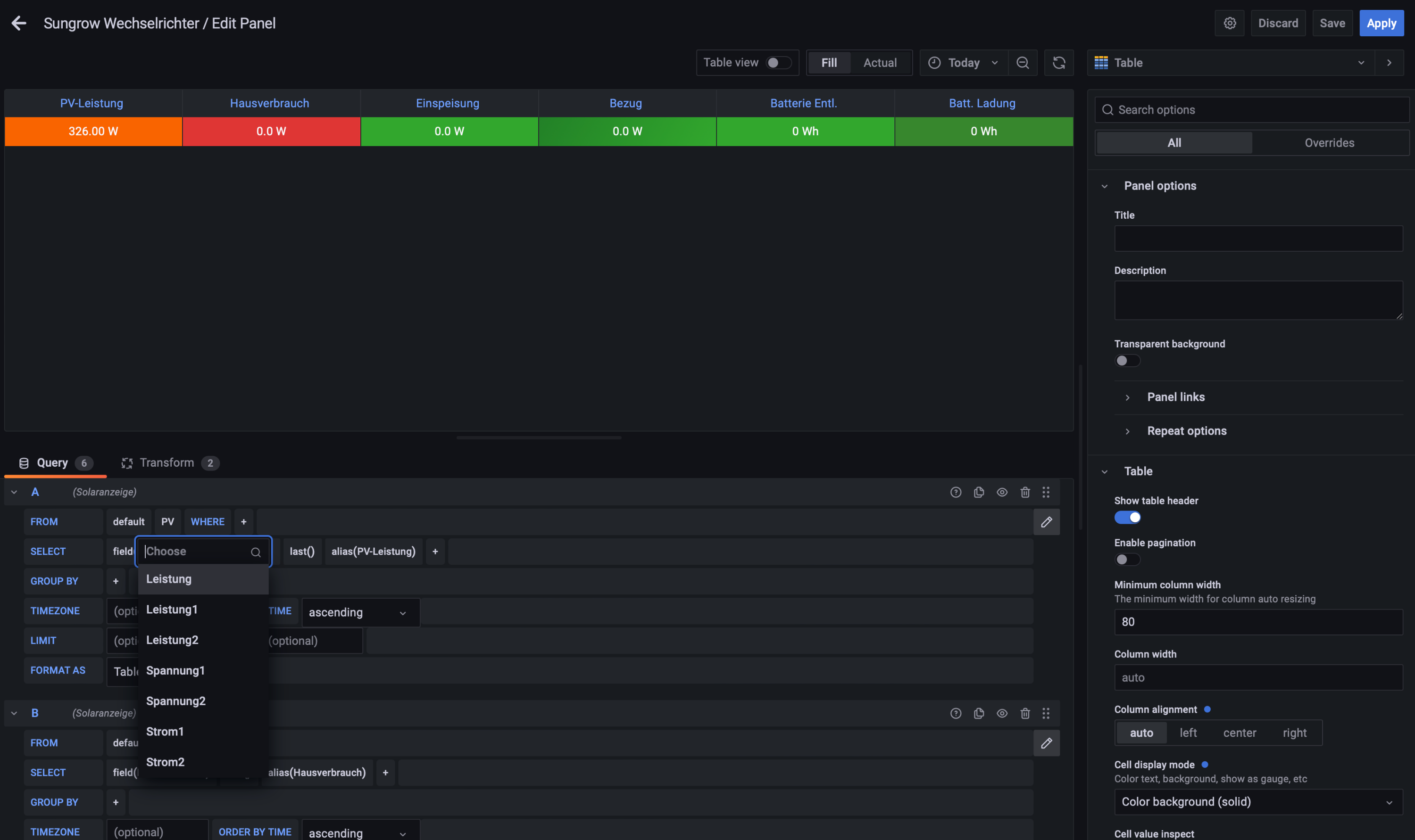 Re: Sungrow Wechselrichter PV Wirkleistung