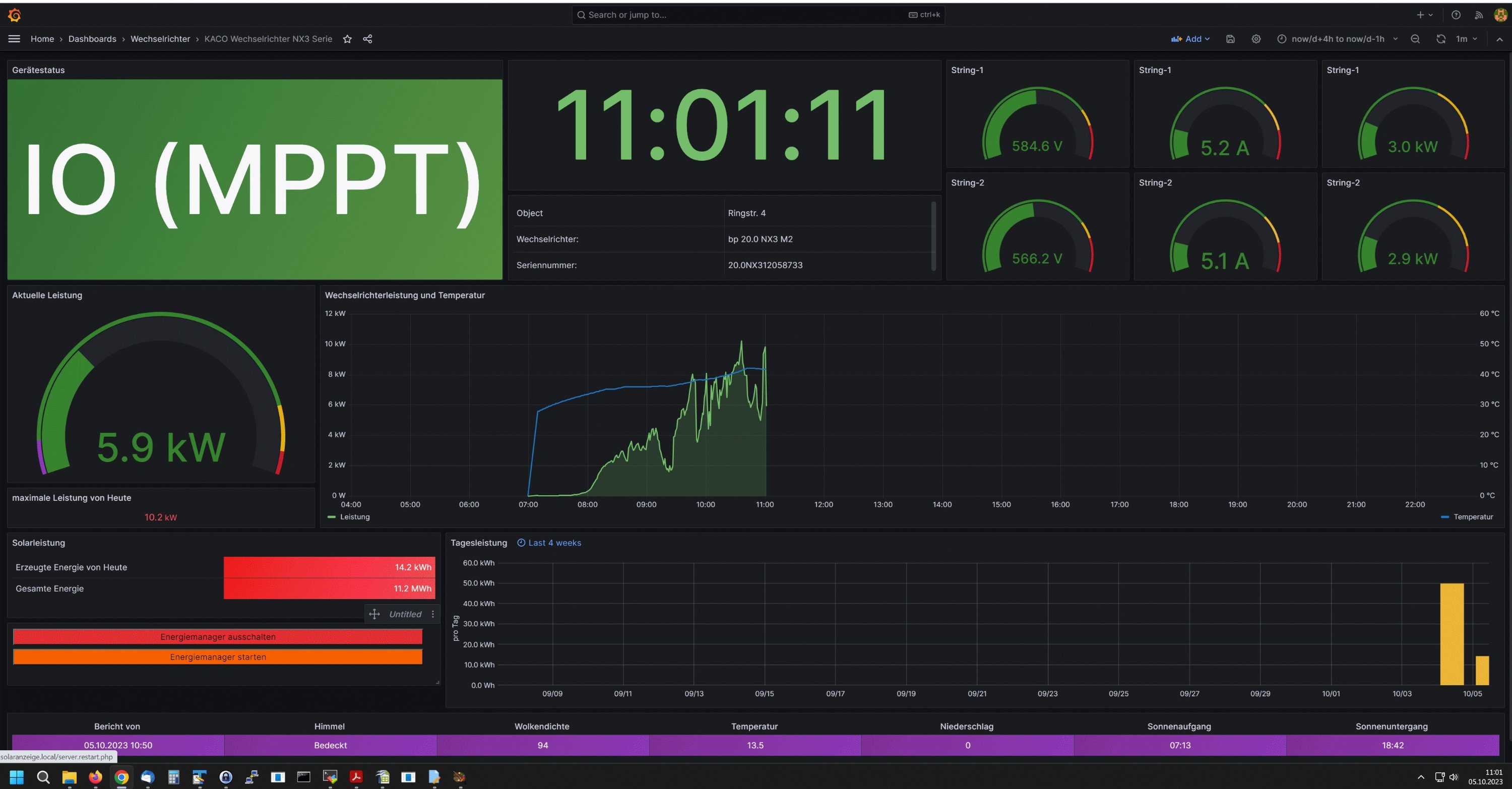 ich habe einen bp 10.0 NX3 M2 und habe die das Dashboard und auch die Dateien ausgetauscht. Leider fehlen mir die Daten für beide Stringspannung und auch für die Stringleistung in der Influx DB. Ich habe in der Datenbank nachgeschaut und habe dort aktuell nur 5 Messpunkte.