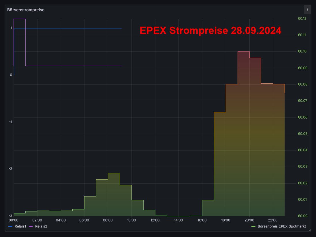 Am 28.9.2024 meldete die Strompreisbörse einen Preis um 9:00 Uhr von 0,0189 € pro kWh und Tibber nimmt zur gleichen Zeit 0,2348 € für die kWh. Das heißt der Aufschlag bei Tibber und meiner Region (Ruhrgebiet) liegt bei 0,2159 € = 21,59 Cent. ( Netzentgelte, verschiedene Steuern, Tibber Aufschlag usw.) Da in dem Aufschlag Steuern enthalten sind, die sich prozentual errechnen, ist der Aufschlag nicht ganz linear, für die Steuerung reicht das aber aus. Wer genau mit dem Maximalpreis arbeiten möchte, muss Tibber benutzen. Nur Tibber liefert per API im Moment den absoluten Endpreis. Dazu kommen noch monatliche Gebühren, die aber nicht in das Gewicht fallen.