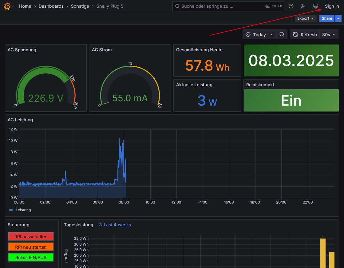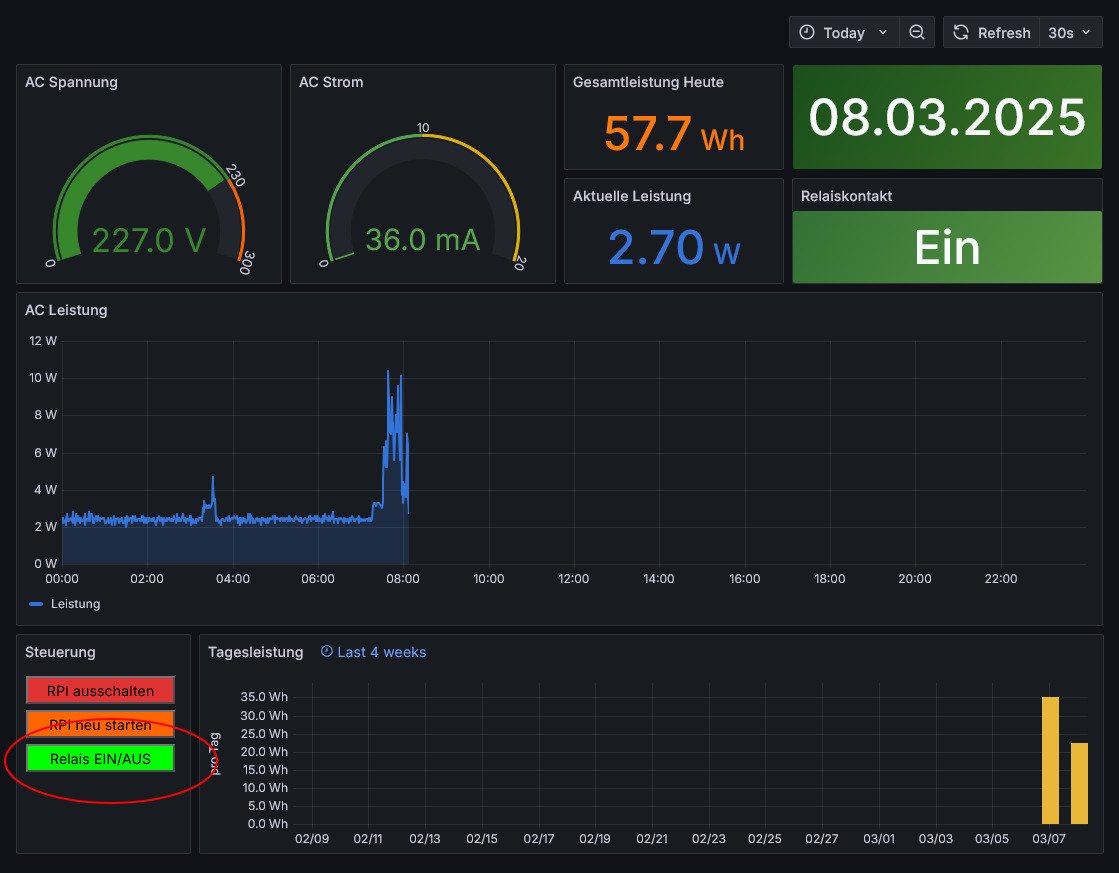 Das Dashboard hat einen Button, mit dem man das Relais im Shelly Plus Plug S schalten kann. Das Dashboard kann man hier herunterladen.