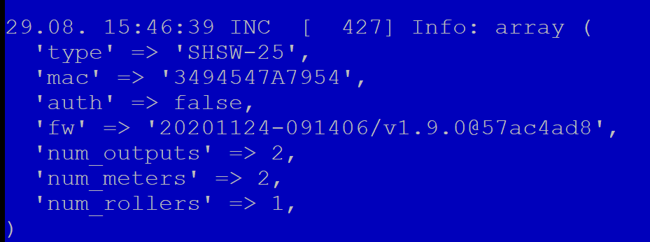 Kannst du noch den Auszug aus der LOG Datei für den Shelly 2.5 hier posten, dann pflege ich den auch hier ein.