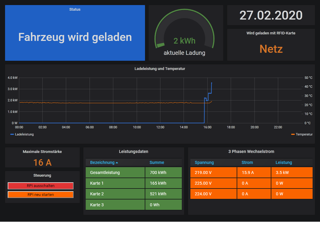 Zuerst die Solaranzeige installieren und die go-eCharger Wallbox konfigurieren. Das Dashboard "go-eCharger" auswählen. Wenn alles läuft sollte die Anzeige so aussehen: